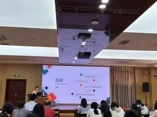 朱教授从职业教育的政策信号、专业群的基本概念、高水平专业群建设的路径、国家教师创新团队创建指标及建设的重难点与保障等五个方面展开。她首先从纠正教师关于参与学校建设的认识误区入手,明确指出教师的发展与学校的建设发展息息相关、相互成就,学校的发展对教师教育教学发展也提出要求,因此了解学校未来发展动向是实现教师与学校同频共振的前提。国家有关职业教育发展和改革出台了众多的指导性政策,指明了十二个关键方面。