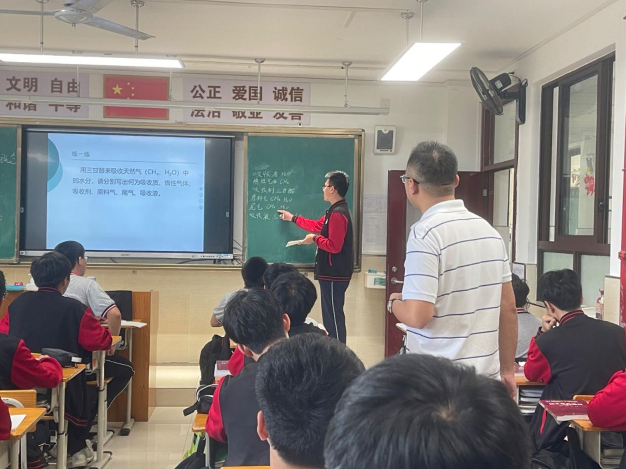 课堂上唐辰炜老师以可乐引入,生动形象的向同学们展示了气体溶解的现象。通过对“啤酒瓶爆裂”、“阴雨天鱼露出水面”两幅图片的展示,同学们了解了气体吸收的影响因素。借助理论模型,唐老师讲练结合、详略有度,以学生为本,为学生打造了一个理论学习的新模式。