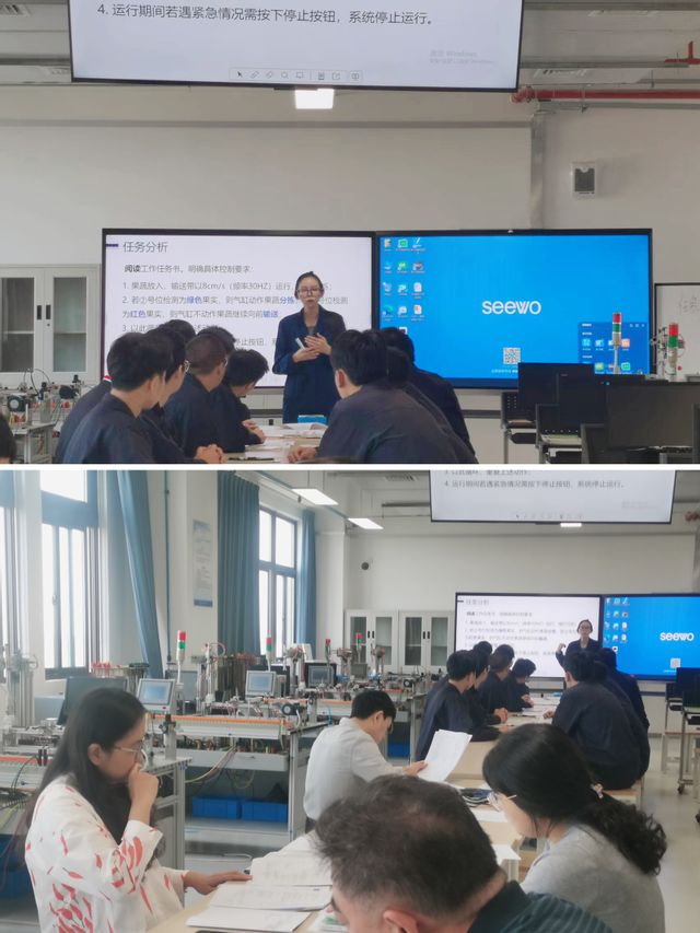 10月19日上午,智能制造学院的鄢熔熔老师在实训大楼707检测技术应用实训室,开设了题为《果蔬智能分拣系统中光纤传感器的应用》的公开课。鄢老师以果蔬分拣生产线为课程导入,引导学生思考,并明确学习任务:光纤传感器的应用并完成果蔬颜色识别与分拣。课堂中学生学习兴趣浓厚,参与度广,学习效果较好。