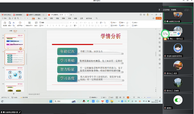 活动开始周红老师介绍了到会的专家。首先说课的是张鹏老师。张老师的课题是《气动薄膜调节阀的结构和工作原理》,从课题分析、学情分析、教学设计、预期效果以及课后反思五个方面展开说课。他介绍了课题定位、教学目标,分析了教材、学情及教学重难点,比较详细介绍了教学策略、教学方法、教学环节,采用多种信息化手段,帮助学生突破难点掌握重点,教学中结合内容适切融入思政教育。