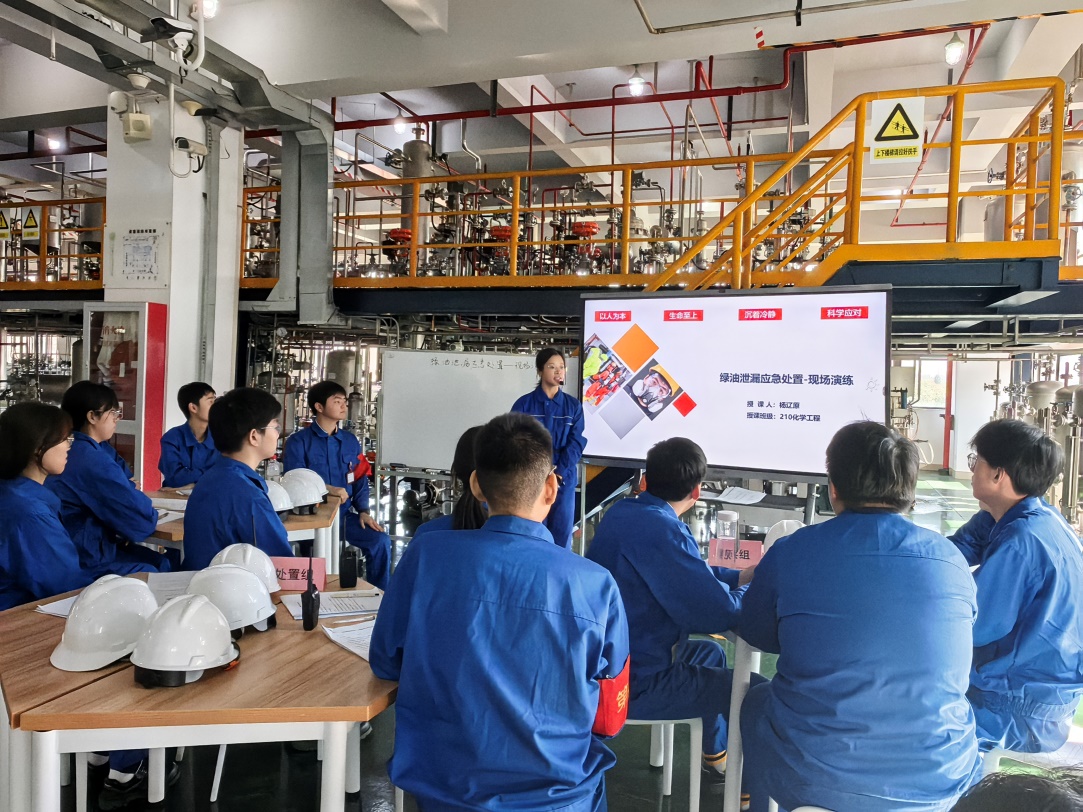 为深化教师、教材、教法改革,提高教师教学能力,提升课堂教学质量,我校开展教师教法交流评比活动。10月23日上午,化学工程学院杨辽原在南区化工实训大楼三楼开展了《绿油泄漏应急处置——现场演练》校级公开课。科研处、质管办、化学工程学院、经贸学院等相关部门负责人和老师参与了此次的评课和听课。