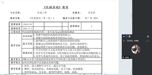10月30日晚上,徐卫东数控名师工作室在线上举办了一场市级公开课教学设计专题研讨,旨在深入探讨平面连杆机构在木牛流马运动机构调试中的应用的教学设计,工作室成员全部参会。