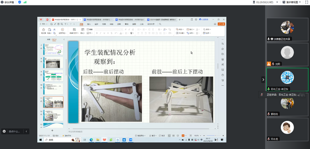 研讨会上,徐卫东对平面连杆机构的基本原理和应用的教学设计做了详细的阐述分析及点评。这堂课通过学习超星学习通上发布的平面四杆机构的图片,让学生进行判断,巩固了平面四杆机构的判定方法。随后通过展示古代木牛流马相关视频,引入新课,引导学生思考如何改良版木牛流马的四肢安装和调试。通过观察、识图、学习、装配、填写和点评等环节,让学生掌握改良版木牛流马的设计和制作过程。同时,通过溯古观今的方式引导学生思考古代能工巧匠的智慧与当今科技爆炸时代的机构设计之间的联系,拓展学生的视野和思路。