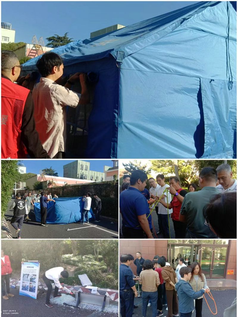 上海市健康安全环境研究会7位老师现场为全校老师进行消防绳结、消防器材使用、破窗体验、心肺复苏、搭建救援帐篷5项内容的讲解和培训。这5项培训内容对于普通民众来说既贴近生活,又非常的容易开展,老师们表示此次培训受益良多。在绳结培训处,老师们不仅学到了看似简单的消防绳结的打法,还知道了不同的绳结在不同的时间点发挥不同的作用;在心肺复苏培训环节,老师们了解心肺复苏在抢救心脏骤停患者时能起到积极的作用,更加明白实际操作时需要施救者现场及时作出认知和判断,并且按正规训练的手法开展初步急救和复苏;破窗项目的体验让一些老师出乎意料,看似易碎的玻璃却不易敲破,它需要一定的技巧,找到点位一击就破,否则就徒劳无功。
