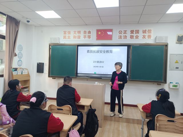 美在金色深秋,秋天风光无限。为了能够实施素质教育,促进同学之间的交流,营造和谐融洽的集体氛围,丰富学生的校园生活,陶冶情操,学校于11月2日举行了学生秋季素质拓展活动,中职特教班全体在校生在学校统一组织安排下,在特教中心老师们的带领下,前往景点“上海千古情”感受申沪古今魅力,出发前,特教中心统一组织各班班主任召开了学生外出活动安全教育主题班会。