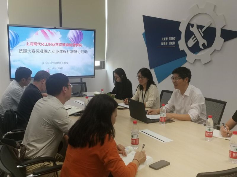 11月4日,金山区徐文明名师工作室邀请了上海信息技术学校李关华、上海电子信息职业技术学院张帆、上海工商信息学校陆冬荣、上海市材料工程学校李莉四位专家参与我校智能制造学院技能大赛标准融入专业课程标准的专题研讨活动。金山区徐文明名师工作室全体成员、智能制造学院院长吴敏及相关专业教师参与了此次活动,活动由金山区徐文明名师工作室主持人徐文明老师主持。