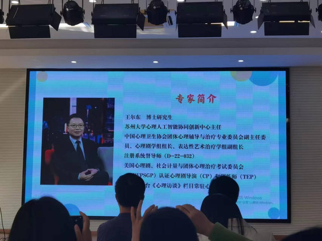 此次培训邀请到的是苏州大学心理人工智能协同创新中心主任,中国心理卫生协会团体心理辅导与治疗专业委员会副主任委员,美国心理剧、社会计量与团体心理治疗考试委员会(ABEPSGP)认证心理剧导演(CP)和训练师(TEP)王尔东老师。在培训中,王老师首先向大家介绍了心理剧的基本概念和理论。心理剧是一种以行动为导向的心理治疗方法,通过表演、角色扮演和观察等方式来探索个体的内心世界,帮助个体解决心理问题。这种方法在心理健康领域中具有广泛的应用价值。