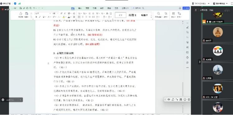 本次会议分为两个议程,首先是汇报化学工艺专业课程思政核心要求与表现性目标,由上海现代化工职业学院沈端、上海市医药学校师帆、上海信息技术学校廖志君、上海材料工程学校刘菁汇报各自负责德目的核心要求和表现性目标的撰写情况。随后柳叶青提出指导意见,她强调目标不是学习活动,而是学生达成的状态;对于核心要求可以更加精练,要将关键性的思政元素融入其中,尽可能鲜明地在国家利益中表现出国家能源安全的思想。