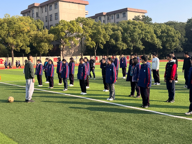 课上,陈超老师通过热身游戏“贴烧饼”导入新课,以分组合作学习的方式实施教学内容。在教学过程中依次采用了无球练习、踢固定球练习以及一踢一停后回传三种练习方法进而突破本节课的重难点,使学生能够掌握正确的脚内侧踢球动作要领,而后所有同学在“穿越隧道”的小比赛中检验了本堂课的学习成果。最后所有同学在陈超老师的带领下完成了体能训练循环练习以及放松身体练习。