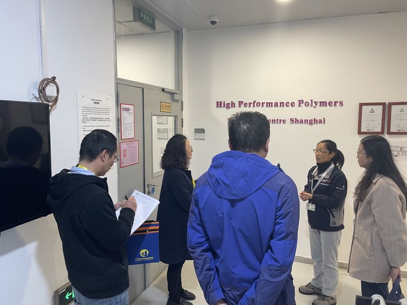 为深入了解化工企业对高分子材料专业人才的需求,推动高分子材料智能制造专业建设以及筹建中的现代化工产业学院的建设,2023年11月17日下午,化学工程学院副院长沈端、科研处处长徐卫东及副处长路雁雁、专业骨干教师交流团队一行5人赴位于莘庄工业区的赢创上海创新园进行调研。赢创上海创新园高性能聚合物技术中心、锂电池研发中心几位负责人热情接待了交流团。
