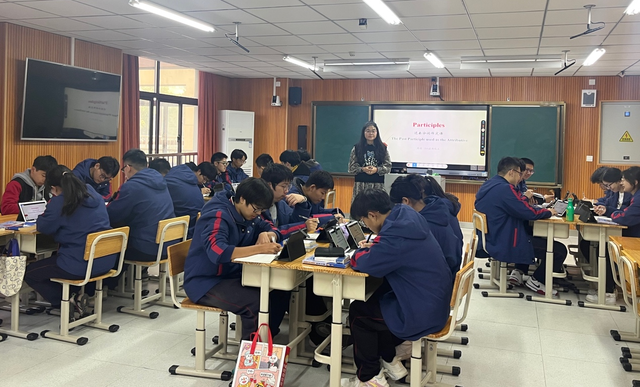 本节课周老师从学生们的需求和兴趣出发,采用任务型教学法和举例讲解的方式,向学生们介绍了过去分词作为前置定语和后置定语的基本用法。随后通过一系列的阅读和翻译任务,帮助学生们深入理解过去分词作定语与定语从句的相互转换,以及过去分词表被动意义和完成状态的用法。课堂上学生们纷纷主动发言,积极参与讨论,课堂氛围积极热烈。