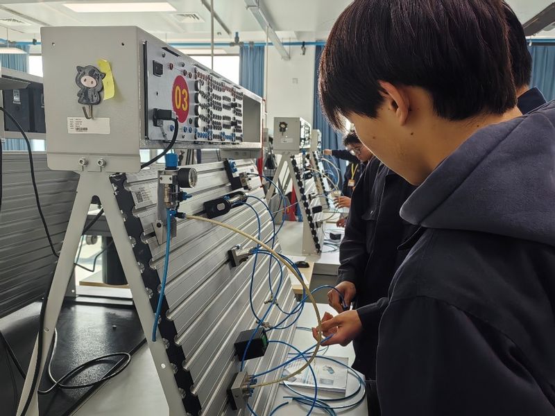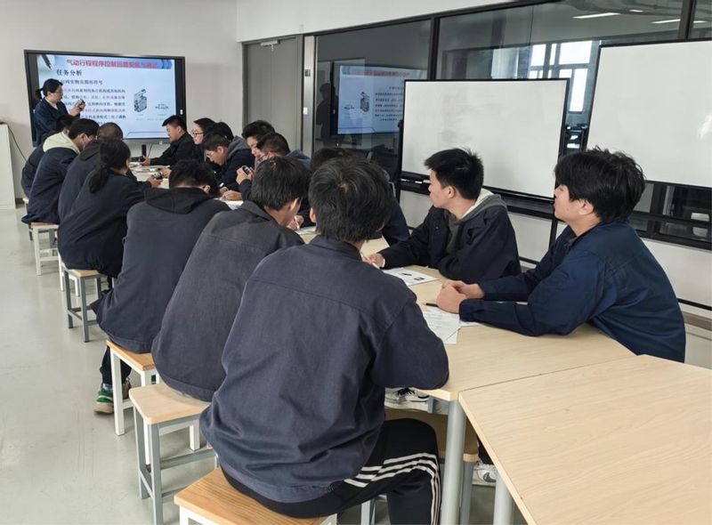 11月23日上午,智能制造学院倪芬老师在智能制造大楼604开设了课题为《气动行程程序控制回路安装与调试》的校级公开课。智能制造学院部分教师前来观摩听课。