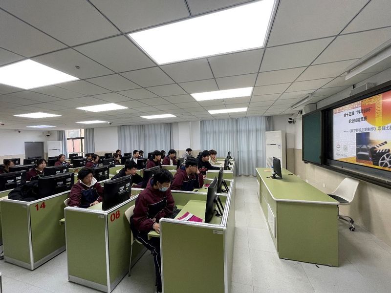 11月23日下午14:45,第十五届“科思创杯”《数字影视后期制作》项目比赛在多媒体教学楼A区402如期举行。学校里有影视制作特长的中、高职学生积极参与,同学们早早来到机房,38位选手同台竞技,比赛气氛异常激烈。