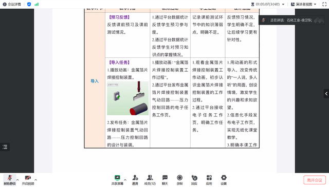 会后,他就课题研究下阶段的工作内容、工作要求、成果材料以及时间节点作了布置,要求全体课题组成员,在本次研讨会后对教学设计的教学内容、教学流程以及能力构建中存在的问题进行修改优化,为后续课题的结题做好准备。