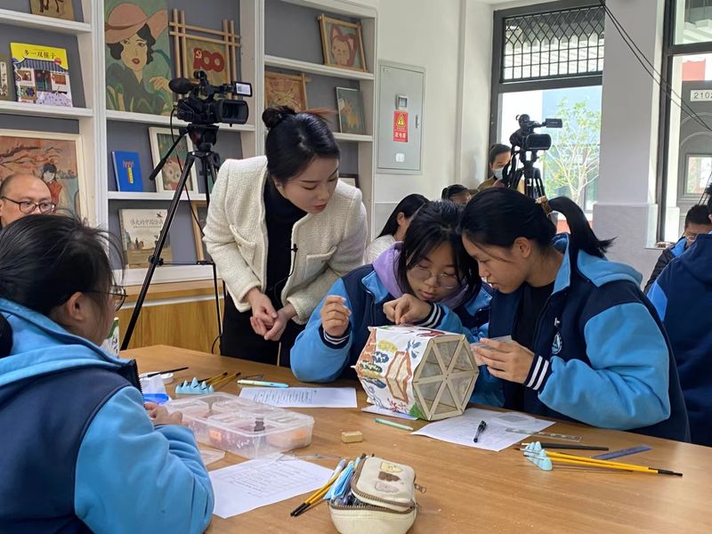 为锤炼教师教学能力,推动课堂教学变革创新,2023 年11 月28 日下午,在金山区劳技学校开展金山区黄汉军名师工作室与周红名师工作室联合课堂教学研讨活动。本次活动主题是黄汉军名师工作室成员杨琪琦老师的《木意彩绘之情系金山(二)》公开课,上海奉贤区华亭学校德育主任罗琳老师和上海奉贤区教育学院附属实验小学总务副主任翁春花两位专家莅临指导,金山区劳技学校孙校长热情接待了大家。