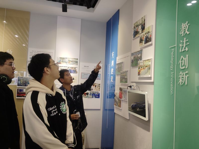 接着,在各班讲解员的带领下,同学们从学校特色、学校荣誉、办学历程、校企合作等方面回顾了学校的发展历程。尤其是在领导关环前,同学们驻足良久,感受到殷殷嘱托的同时,也感受到了身上肩负的责任。馆内充满岁月印记的历史材料,展现了我校和企业、政府、社会一同进步,在不断的发展中达到了更高的水平。一幅幅校史变迁的老照片、一个个承载建校记忆的老物件、一块块记录发展历程的精美展板,无不吸引着同学们的眼球,让大家深切感受学校的发展既是一部自强不息的奋斗史,也是一部与时俱进的开拓史。大家一边参观,一边拍照,徜徉其中,仿佛自己也置身于学校40余年的漫漫长河中,与学校的前辈们对话交流。前辈们留存下来的非凡成就使同学们深受鼓舞、倍感振奋。