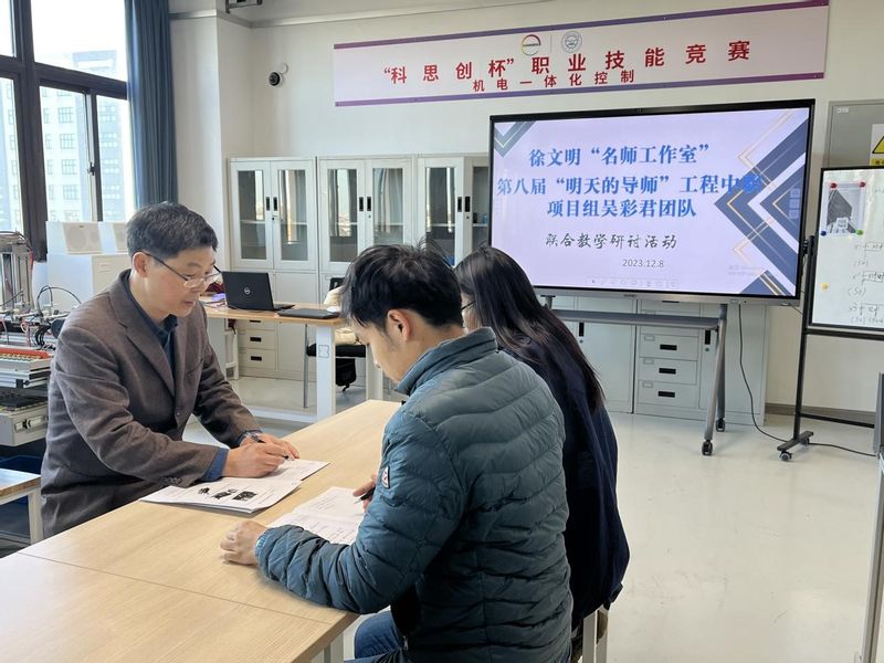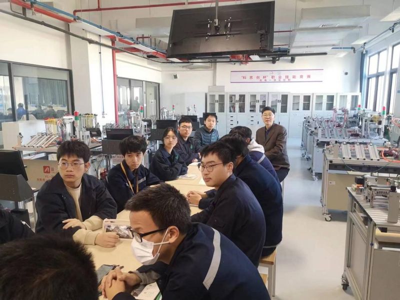 12月8日上午,智能制造学院鄢熔熔老师在智能制造大楼501实训室开设了题为《任务二果蔬智能分拣系统中光纤传感器的应用》的校级公开课。金山区徐文明“名师工作室”导师徐文明、金山区第八届“明天的导师”工程吴彩君老师团队成员王凡前来听课评课。