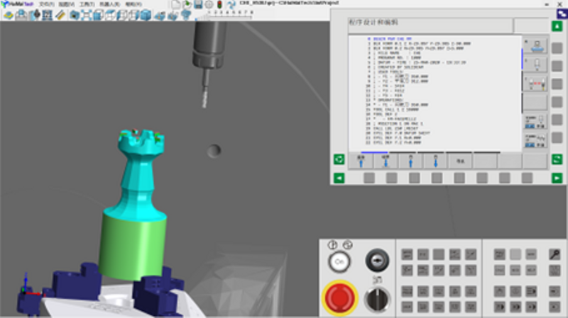多轴加工是指使用数控机床进行多轴联动加工,可以实现叶片等复杂零件的高效、高精度加工,多轴加工操作复杂、难度大。多轴设备比较昂贵,一般院校采购数量有限,在教学上通过多轴数控仿真软件的使用,能有效解决实训学生人数较多的问题,学生通过虚拟仿真实训在仿真软件上可以进行编程的学习并找到编程中出现的问题,这样可以减少上机时出现的错误减少占机时间,提高了设备的使用率以及降低了因手工编程错误而造成的碰撞风险,极大的提高了学习效率,仿真软件的使用可以有效缓解“学生多、设备少”的问题。此次培训基于海德汉数控系统的Mikron HEM 500U五轴加工中心操作。