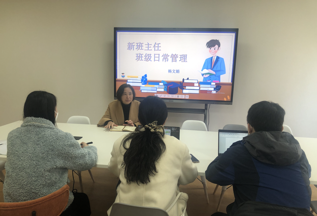 为全面提升班主任队伍素养,高效落实“立德树人”根本任务,搭建一个相互学习、共同提升的交流平台,12月14日中午2023-2024学年新班主任培训在学生活动中心310室如期举行。本次培训由上海市优秀班主任杨文娟老师主讲,由班主任工作室薛飞老师主持,薛名君、陈嘉瀚、王芳三位新班主任参加培训。