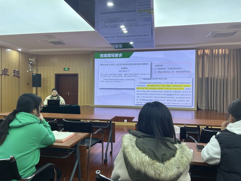 牛亚杰老师以学院优秀教案、试卷为案例,从教学目标和重难点设置、思政元素切入、教学内容及学时分配(含实践、习题、实验等)、实施教学目标的方法和手段、达成目标、试卷格式规范等几个基本点,讲述、分析了如何切合课程要求编写教案、编制试卷。牛老师特别指出课程思政贯穿于整个课程教学中,教案的编写一定要融入思政元素。还就教案、试卷中的常见的问题与教师们进行了交流和讨论。她提醒教师们,在制定教学文件时要注意文件的统一性和规范性,避免出现繁琐冗余、格式不统一等问题。