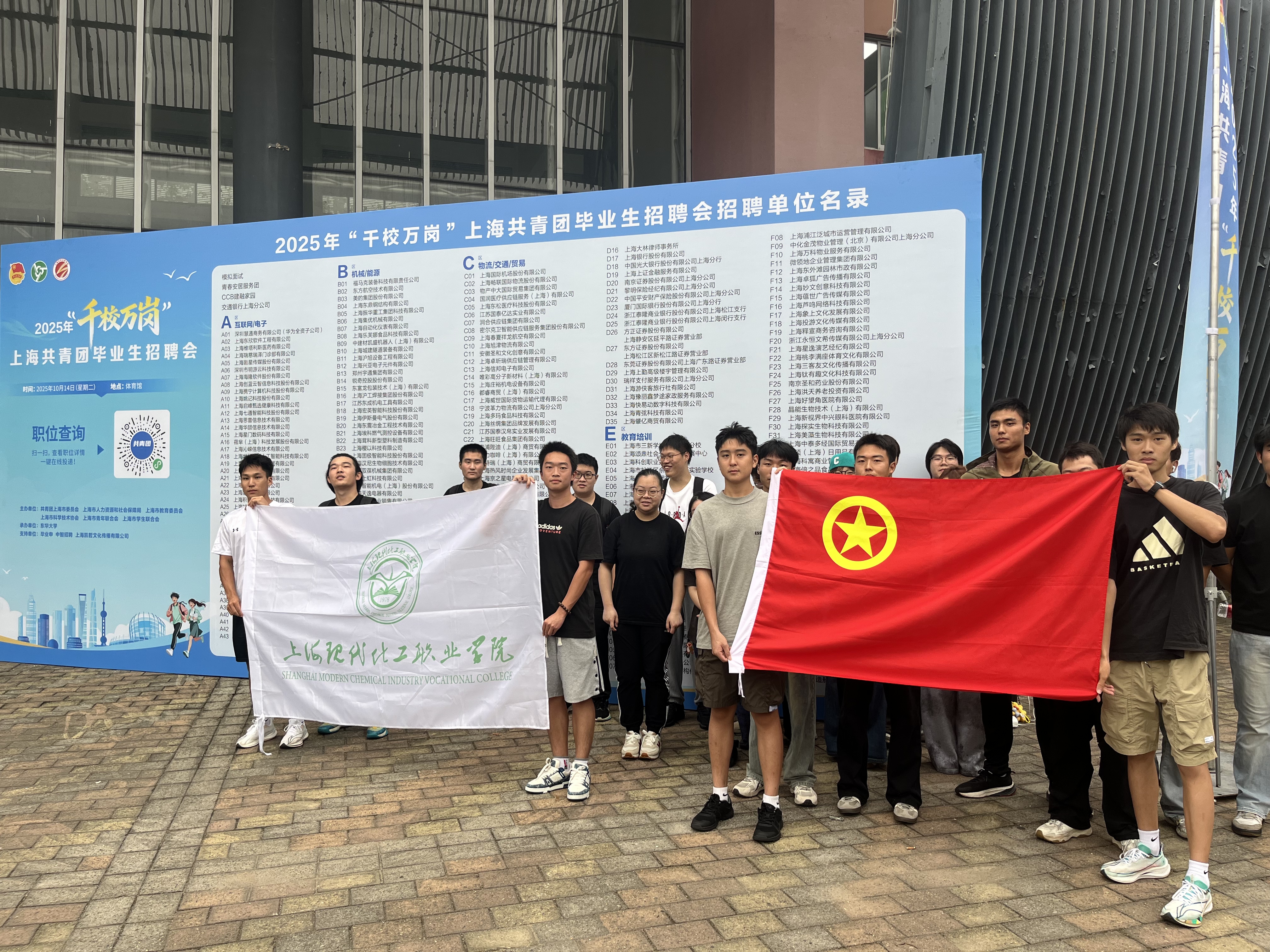 10月14日下午,2025年“千校万岗”上海共青团毕业生招聘会在东华大学(松江校区)体育馆举办,我校2026届毕业生积极报名参与此次招聘活动,现场求职氛围热烈。本次招聘会规格高、资源广,由共青团上海市委员会、上海市人力资源和社会保障局、上海市教育委员会联合主办。团市委副书记王江,东华大学副校长陈革出席活动,为高校毕业生就业工作站台助力。