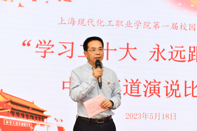 为学习贯彻党的二十大精神,努力推进习近平新时代中国特色社会主义思想入心入脑入行,我校马克思主义学院于5月18日下午1点在学校多功能厅顺利举行“学习二十大 永远跟党走”中文赛道演说比赛决赛。学校党委书记高炬、党委副书记杜海燕以及学生工作部、马克思主义学院、公共基础学院等相关部门领导出席了本次活动。学校语文教研室部分教师担任本次大赛的评委,比赛由马克思主义学院德育教研室汤正东老师主持。