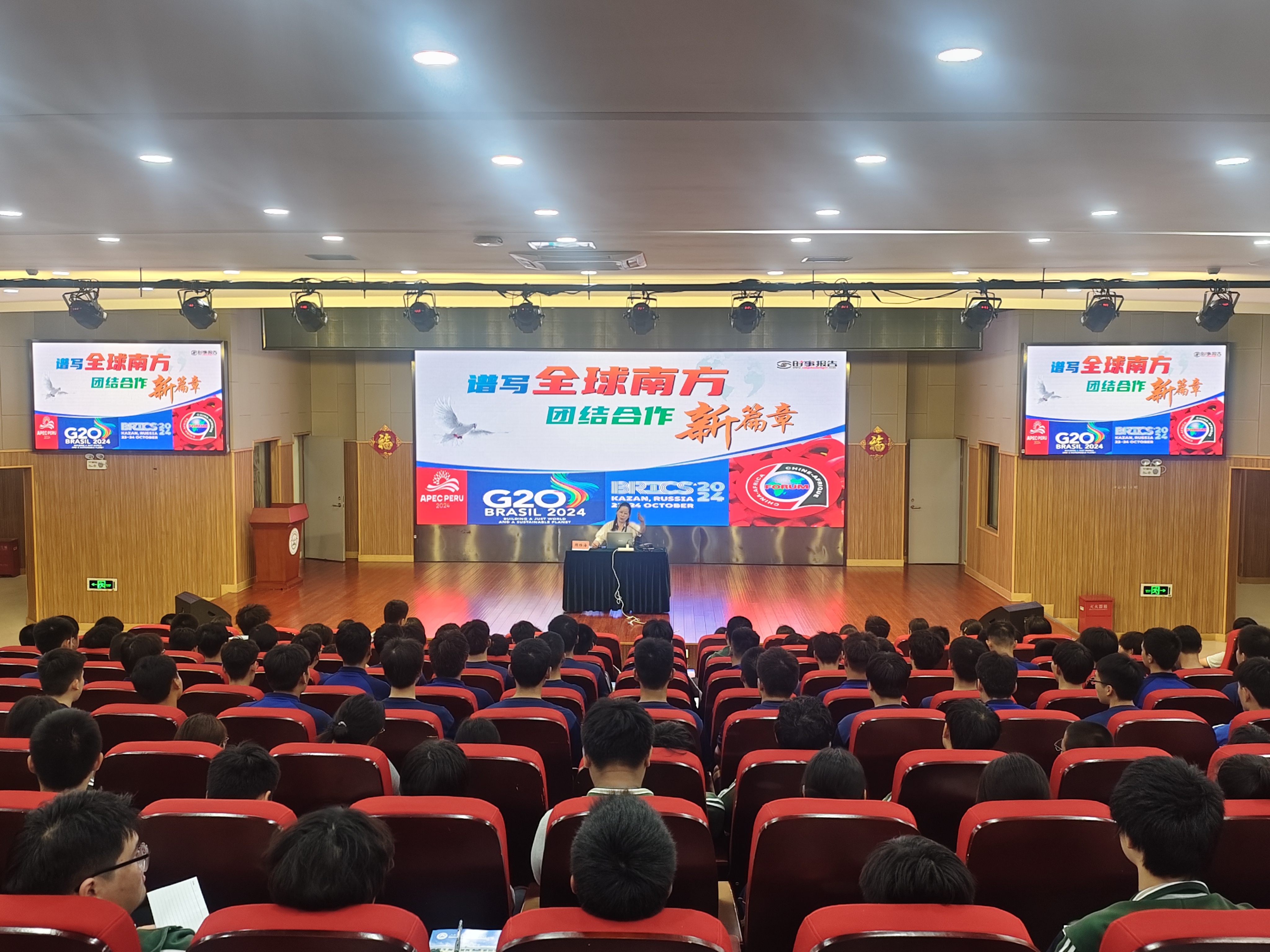 在《谱写全球南方团结合作的新篇章》专题授课中,颜维海从全球政治经济格局变化切入,介绍全球南方国家在国际舞台上的重要地位和作用。通过列举南南合作等实践案例,生动展现全球南方国家加强团结合作,共同应对全球性挑战、谋求共同发展的积极行动,让学生们对国际合作有了更深刻的理解。