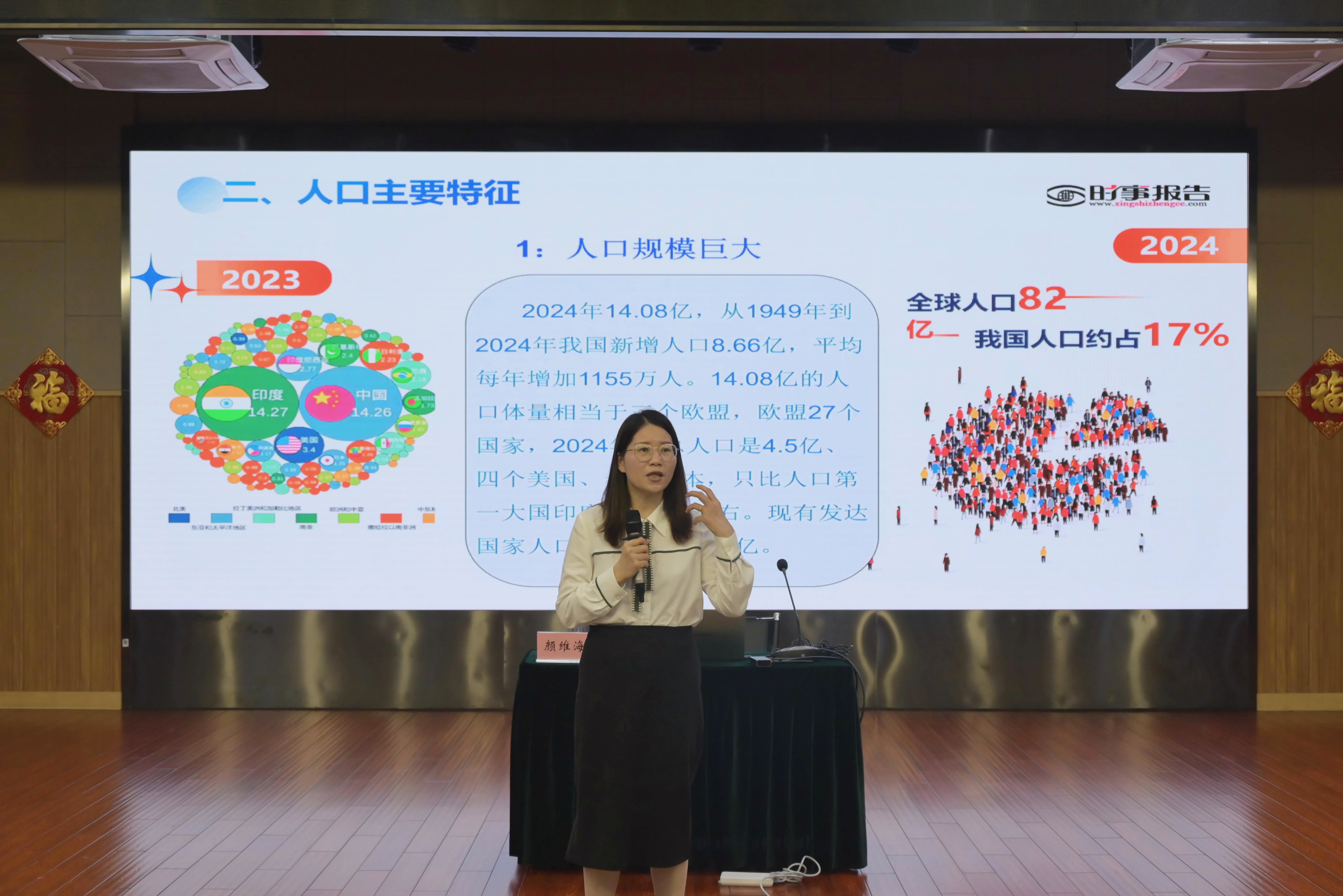 在《以人口高质量发展支撑中国式现代化》专题授课中,马克思主义学院颜维海副教授深入剖析我国人口发展的现状与趋势,详细阐述人口高质量发展对中国式现代化建设的重要意义。通过列举科技、教育、卫生等领域的具体案例,颜维海解读了人口质量提升在推动科技发展、经济进步、社会全面发展中的关键作用。课堂上,学生们积极参与讨论,就人口少子化应对措施、劳动力素质提升方法等话题各抒己见,现场学习氛围热烈。