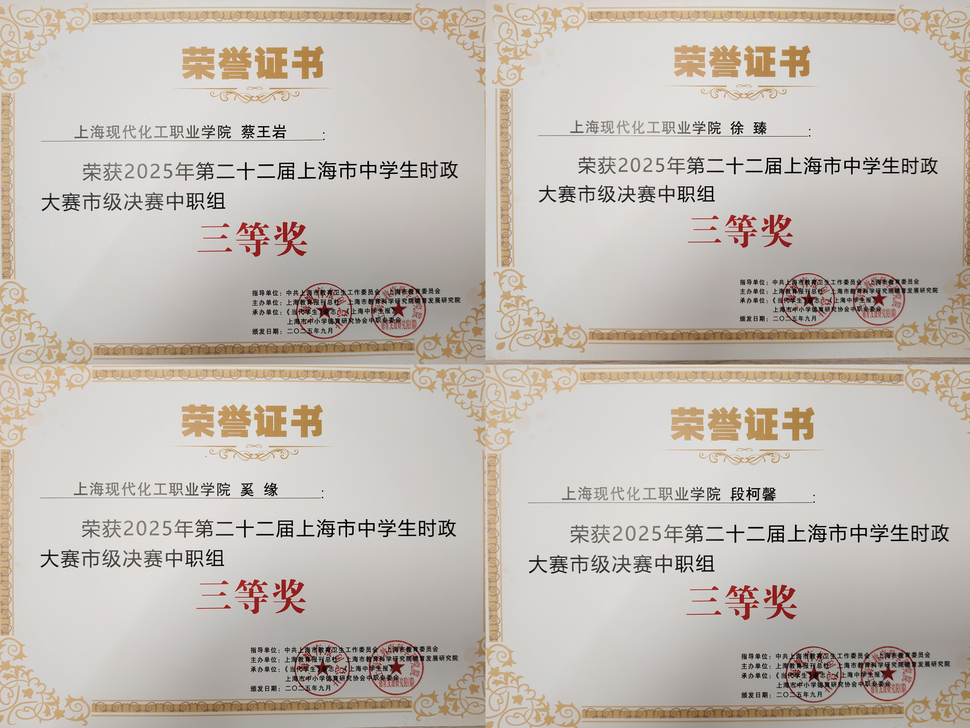 近日,第二十二届上海市中学生时政大赛个人决赛圆满落幕,我校10名学生凭借扎实的时政素养和出色的表现成功入围决赛。经过激烈角逐,最终8名学生荣获奖项,其中蔡王岩等4位同学获得三等奖,张静欣等4位同学获得优胜奖,展现了我校学子扎实的知识学识与昂扬的精神风貌。