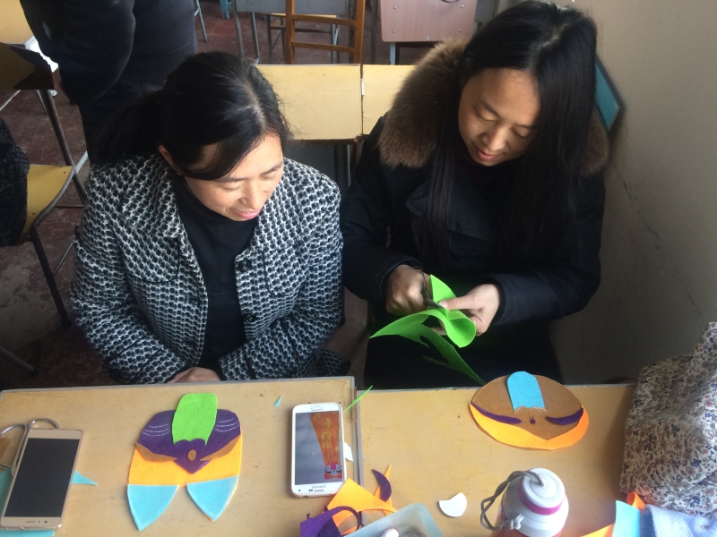 当天下午,两位老师向大家简单介绍了历年技能竞赛的比赛项目,历数了竞赛考察的各种技能以及难点和突破点;为大家演示了十种针法的操作方法,不织布、棉布等各种布艺材料的裁剪、黏贴、连接、装饰等技能要点。