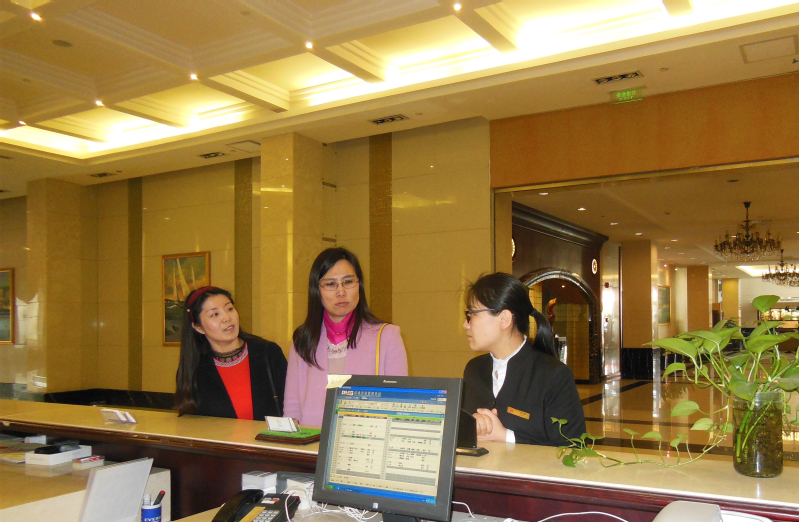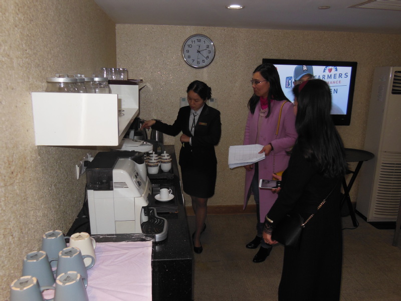向人力资源部门陶总监说明来意之后,陶总监安排餐饮部王经理和客房部祁经理带领一行人参观。在各位经理的允许下,到场的教师事无巨细,大至吧台、餐桌、衣橱、床,小至餐具、设备型号、插座数量等都一一进行询问了解。各位经理都是对酒店餐饮客房业有十多年从业经验的过来人,与专业教师就用餐礼仪餐具布置、酒店入住服务等内容展开了交流,思想火花激烈碰撞,交流许久还意犹未尽,有一种“听君一席话,胜读十年书”的收获感。经过此次参观,专业教师对如何建设好餐饮、客房、会务实训室有了更清楚的行动方向,相信在酒店的齐心协助下,学校能利用有效的实训环境模拟酒店服务场景,培养出更符合酒店服务需要的知识与技能兼备人才,力创双赢局面。