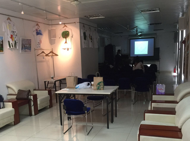 最后,在参观教学楼和实训室中,我们发现学校布置得格外温馨和细心:墙上挂满了孩子们充满童趣的作品;由于孩子们都有智障,墙上的课程表在写上文字的同时温馨的画上了图片;无论是墙壁还是楼梯都装有扶手,扶手高度与学生身高相匹配。