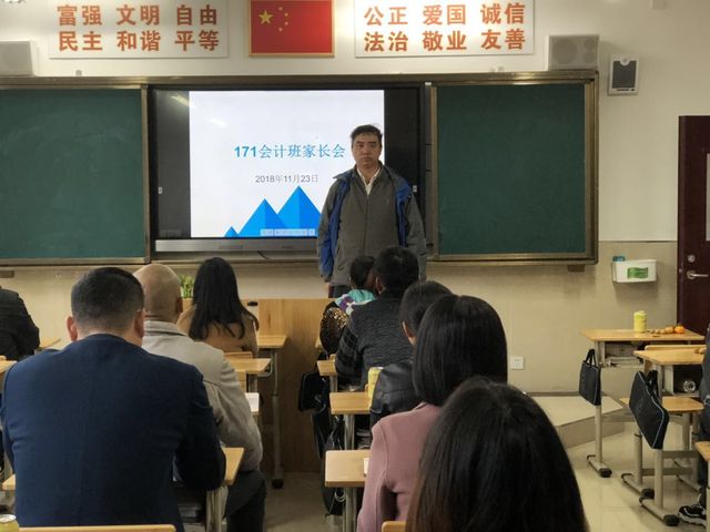 2018年11月23日下午放学后,在学校北区善学楼一楼,经贸科辅导一组,召开了家长会,家校合作,共育未来。