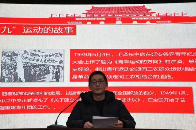 彭旭东向学生们讲述了中国共产主义青年团诞生至今的四个时期。第一阶段是社会主义青年团的创建,第二时期是共产主义青年团时期,大会根据新的形势规定了今后团的工作方针和任务,进一步明确共青团的性质是“无产阶级青年的革命组织”。第三个时期是新民主主义青年团时期,这个时期宣告中国新民主主义青年团正式建立,提出中国新民主主义青年团是中国共产党的领导下,为彻底实现新民主主义而斗争的先进的群众组织,同时还规定团的任务是用马克思、列宁主义教育青年,团结广大青年。最后一个时期是中国共产主义青年团时期,它标志着全国国民经济出现好转。