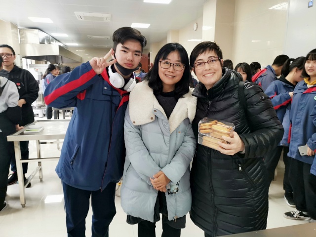 英语交流结束后,社团指导教师李晓飞邀请Daphne参观了我校人气爆棚的烘焙社团。对于外教的到来,烘焙社团的学生也表示热烈欢迎。有的同学把自己刚刚制作好的饼干赠送给外教做礼物。