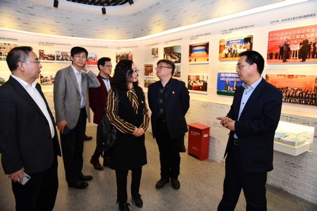 全体专业建设指导委员会委员在我校校长高炬的带领下,详细参观了学校的校史馆和AHK中德化工职业培训基地。途中,委员们在赞叹学校高质量发展的同时,围绕职业教育的实训建设、专业发展、技能大赛、办学中的重点难点等,纷纷展开热烈的对话交流,借鉴与启发各自学校的深度发展。