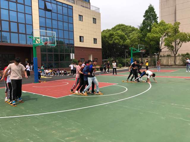 下午在南区操场开展趣味游戏比赛,学生们以寝室为小组,参加定点投篮、大脚板、齐心协力跑、无敌风火轮四个项目。大家非常积极地参与到活动中,认真演练,相互指导,共同研究,团队合作更加默契。大家相互喝彩和鼓励,在你追我赶中创造更佳成绩。