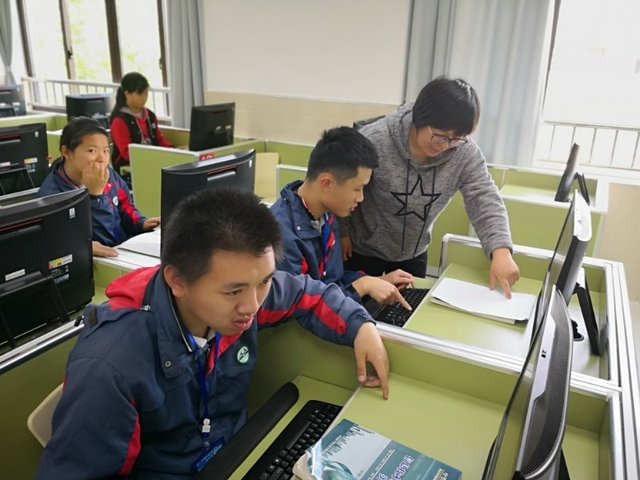 课上,左文英老师进行分层教学:A层学生练习英文打字,B层和C层学生学习EXCEL公式与函数,C层学生如提前完成学习任务后,继续做拓展任务。在复习和导入环节,左老师引导学生复习了上次课所学的四个函数,并通过“学生说、老师做”复习了函数和公式的使用方法。在新课教学环节,以任务形式开展教学,巩固函数的应用。在整个教学过程中,学生学习主动,学习气氛活跃,师生互动好。左老师给学生及时耐心的指导,“一对一”的小老师在完成任务后,能主动去指导自己的同学。