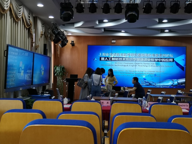 5月20日下午,我校英语组教师姚惠红老师和张丹老师前往普陀区真如文英中心小学,参加了上海市英语教育教学研究基地海外专家系列论坛活动,活动的主题是“人工智能在小学英语课堂教学中的应用”。