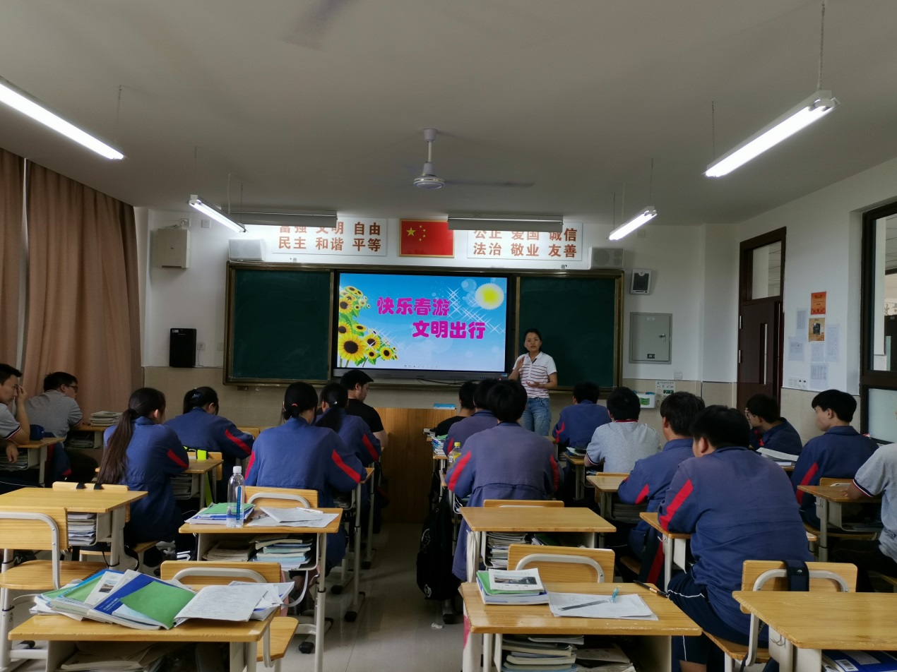 为教育学生快乐春游,文明出行,化工辅导三组于5月29日周三班会课时间召开春游安全教育主题班会。班主任逐一提出本次活动的注意事项以及出行要求,要求学生统一穿着夏季校服,穿合脚的运动鞋,关注天气预报,必要时带上雨具或者防晒用品。每位学生要有时间观念,不因私人原因影响其他同学的出行。5月30日活动当天准时到北区操场集合,整队上下车。坐车时要照顾身体弱和晕车的同学,礼让女生,男生要有绅士的风度。在车上不大声喧哗,保持车厢安静与整洁。不在车厢里吃零食,避免晕车呕吐的现象。妥善保管好自己随身携带的物品,上下车不要忘记自己的物品。在园内游玩要遵守规则,做到排队等候,不拥挤。在校外也要遵守校纪校规,不做有损学校形象的事。活动时不得独自离开小队或班级队伍,如有事至少要两人同行,并及时告知组长,由组长向带队教师汇报。在途中要团结友爱,互相帮助,不与他人起争执,有事报告带队教师或导游。记住带队教师和导游的电话,遇事应立即求助于老师或导游或园内工作人员。游玩期间,要牢记老师交代的集合时间、地点、所乘巴士车号,以及带队教师的姓名和电话号码。一旦脱离团队,不要慌张,立即给带队教师打电话,或在集合地点等候导游返回寻找,或找到同校老师报告情况以便联系原来的团队。