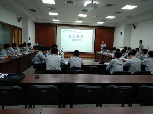 第一天学员们穿好工作服、工作鞋,佩戴好胸牌和臂章,在机电科数控组刘文文老师的带领下,愉快的到达了企业。虽时间有些仓促,但在企业的安排下,181数控01班的学生们又穿上了新发的衬衫,兴奋的开始了第一天的学习。首先,由企业人力资源课汪云绯课长给学员们详细解说了这一周的学习行程与安排。第一天的学习是安全方面的,课题为“危险的识别与消防疏散演练”。接下来,请到了企业的安全科长为学员们罗列了一系列生产业的潜在危险事故,并提出一个名为“你能接受多少人事故死亡的话题”,同学们积极的回答“四个、五个、七个……”。安全科长说:“如果这几个人都是你身边最好的朋友、或者是亲人,你还能接受吗”时,同学们都默默不作声了。安全科长告诉了同学们,人的生命是无价的,也是极为珍贵的,一旦人没了那就真的什么都没了。通过学习,学员们知道了工作时潜在的各种危险,并了解了怎么找到根源因素去预防与防范。