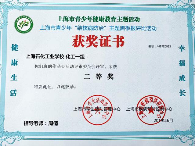 在今年世界防治结核病日期间,我校化工辅导一组参加了“上海市青少年“结核病防治”主题黑板报评比活动”,近日喜讯传来,参赛作品荣获二等奖。