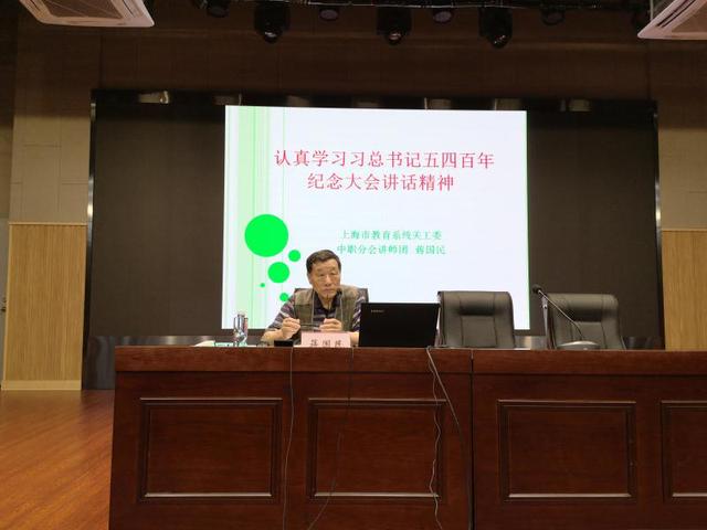 为纪念五四运动100周年,建国70周年,6月19日下午我校学生处、团委邀请上海市教委关工委讲师团成员蒋国民,为我校全体学生开展“学习习总书记五四百年纪念讲话精神”专题讲座。