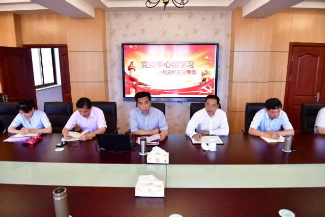 6月20日,校党委在厚德楼四楼会议室召开中心组学习扩大会,专题学习《中华人民共和国宪法修正案》。党委委员、部分中层干部参加会议。会议由校党委书记林国新主持。