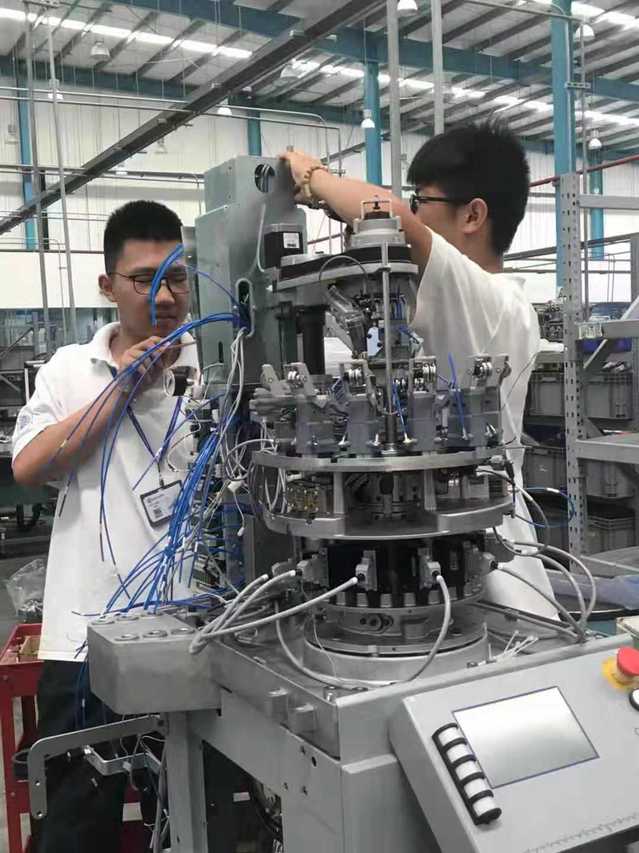 在这个酷热的暑假里,有一批同学期末考一结束就进入企业进行实践培训,毫无怨言的放弃了整个7月,每天顶着太阳按时来到位于山阳地区的圣东尼(上海)针织机械有限公司,按照要求进行校企“双元”培养环节中的第一轮企业实践环节,他们就是机电科171机电01班(AHK圣东尼)的35位同学和班主任汤东妹老师。在圣东尼针织机器工业园的配合下,全班同学分为六个组进入到圣东尼、蓝剑、凌高、琦冠四个企业中进行轮岗实践,涉及计划、采购、生产、装配、质量检验等多个岗位,每个小组独立制定轮岗计划。