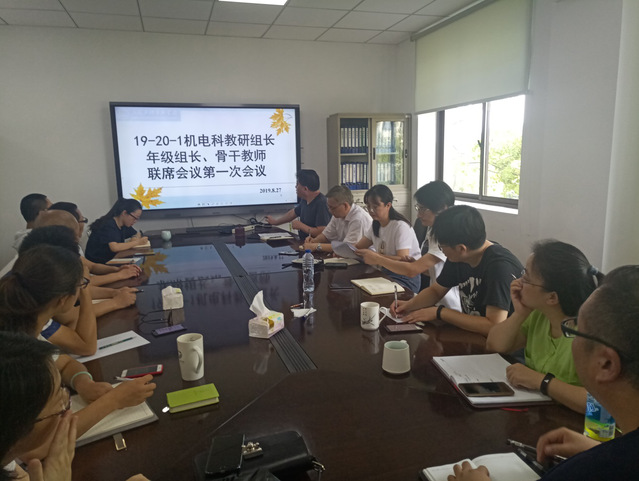 8月27日上午,在机电科科长徐卫东的主持下,机电科在南区办公楼401会议室召开了新学期首次教研组长、年级组长、骨干教师联席会议,科办成员、教研组长、年级组长、骨干教师参加。