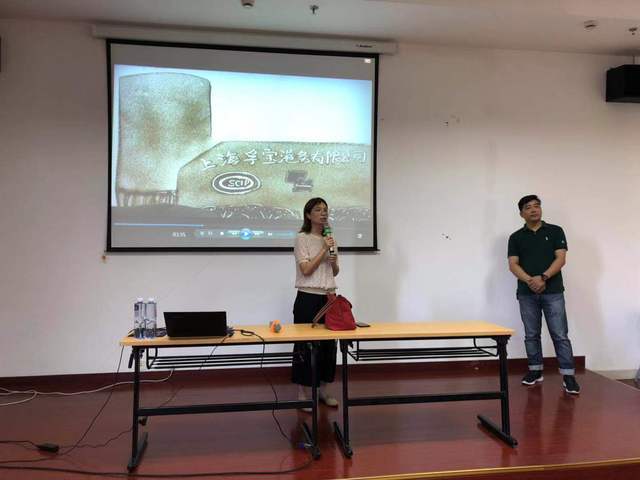 上海孚宝港务有限公司由荷兰皇家孚宝公司与上海化学工业区发展有限公司合资组建,坐落于上海化学工业区。公司建造并经营液体化学品码头(含有5000-25000吨级泊位2个,1000-12000吨级泊位1个,1000-5000吨级泊位3个)、罐区(50个储罐,32.5万立方米储容)、分装(十二条装桶线)、一万平方米的仓库及相关卡车、火车装卸和装桶的配套设施,为上海市化学工业区内赛科、拜耳、巴斯夫等大型化工企业及化工园区外的国内外企业提供全面的液体化工品仓储物流服务。干经理从荷兰皇家孚宝总部的总体介绍,到坐落于上海化学工业区的漕泾分部战略功能解说;从客户群体到产品分类、从中职生职业生涯规划到对化工物流专业学生各式各样问题的解答,一个个企业真实案例,生动形象、深入浅出,带领学生们打开化工物流的世界。