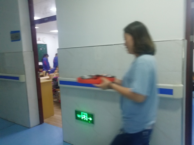 殷老师强调“特殊中等职业教育”是一项专项工作,更是政治使命,是中职教育中最特别的存在。市教委、区教育局以及学校各级领导对特教工作组给予了高度重视;特教工作组的老师们更是奔赴在特教工作的最前线。在殷老师的带领下,特教中心生气勃勃:教辅人员兢兢业业,勤勤恳恳,各司其职;经过摸索和沟通,各个班主任对特殊学生的突发状况逐渐形成了一套应对机制;每个任课教师也匠心独具地为特教学生量身定制了课程方案,使课堂氛围严肃活泼,自由有序;具有特教特色的《职业康复与潜能开发》课程包罗万象,精彩纷呈:书法,趣味物理,趣味英语,趣味数学,折纸,黏土,美术等;已经开设的《酒店收银业务》、《会务接待》、《客房服务》等专业课程,刚刚开设的的《中式面点》,《商品知识》,还有待开设的《西式面点》集知识、趣味、康复于一体,贯彻了专业建设“课程多样化”的理念。