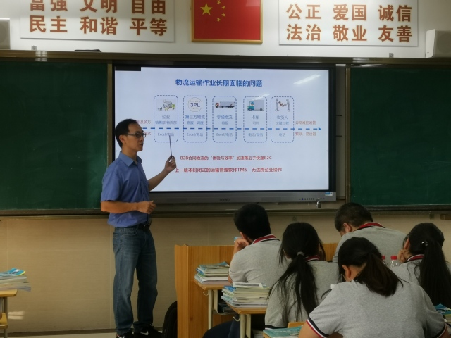 随着“互联网+”的兴起,物联网技术的应用,VR(虚拟现实)、AI(人工智能)等技术快速发展,物流管理向自动化、智慧化发展,物流信息技术的应用发生了天翻地覆的变化。为了使171物流班的同学们更深刻认识到本学期新课程《物流信息技术应用》的重要性,9月12日上午,经贸科邀请了来自上海中石化工物流股份有限公司(以下简称为“中石化工物流”)的市级特聘兼职教师李国庆来校为171物流班授课。李国庆在中石化工物流担任信息部经理,具有丰富的物流信息技术管理和建设的经验。171物流班的同学们热情地欢迎了李国庆经理的到来。