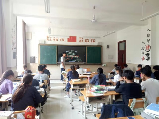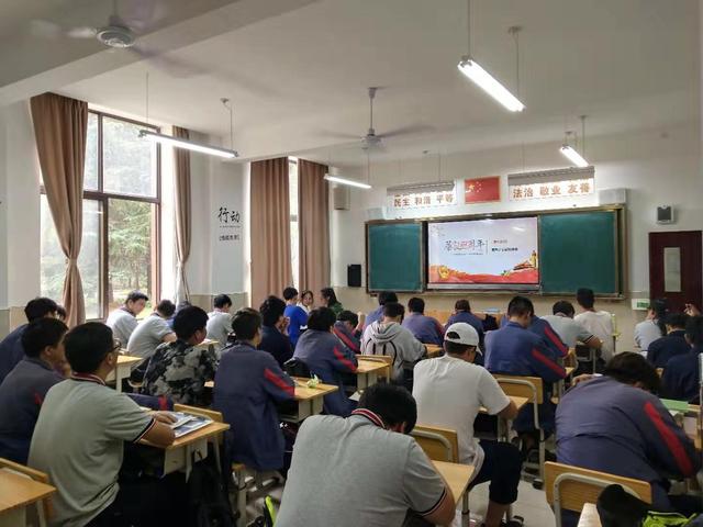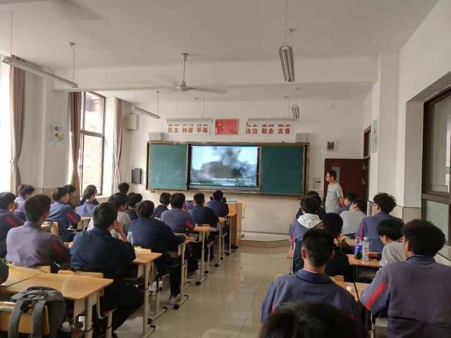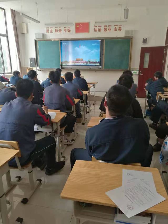 在班会上各班也用了不同的方式来表现,例如观赏一些为祖国而站在前线的英雄事迹;又例如171机电01班全班一起以歌唱《我和我的祖国》来表达自己对祖国的热爱和用饱含温情又热烈高亢的诗歌来表达自己对祖国日益壮大的自豪,以及对祖国的热爱。